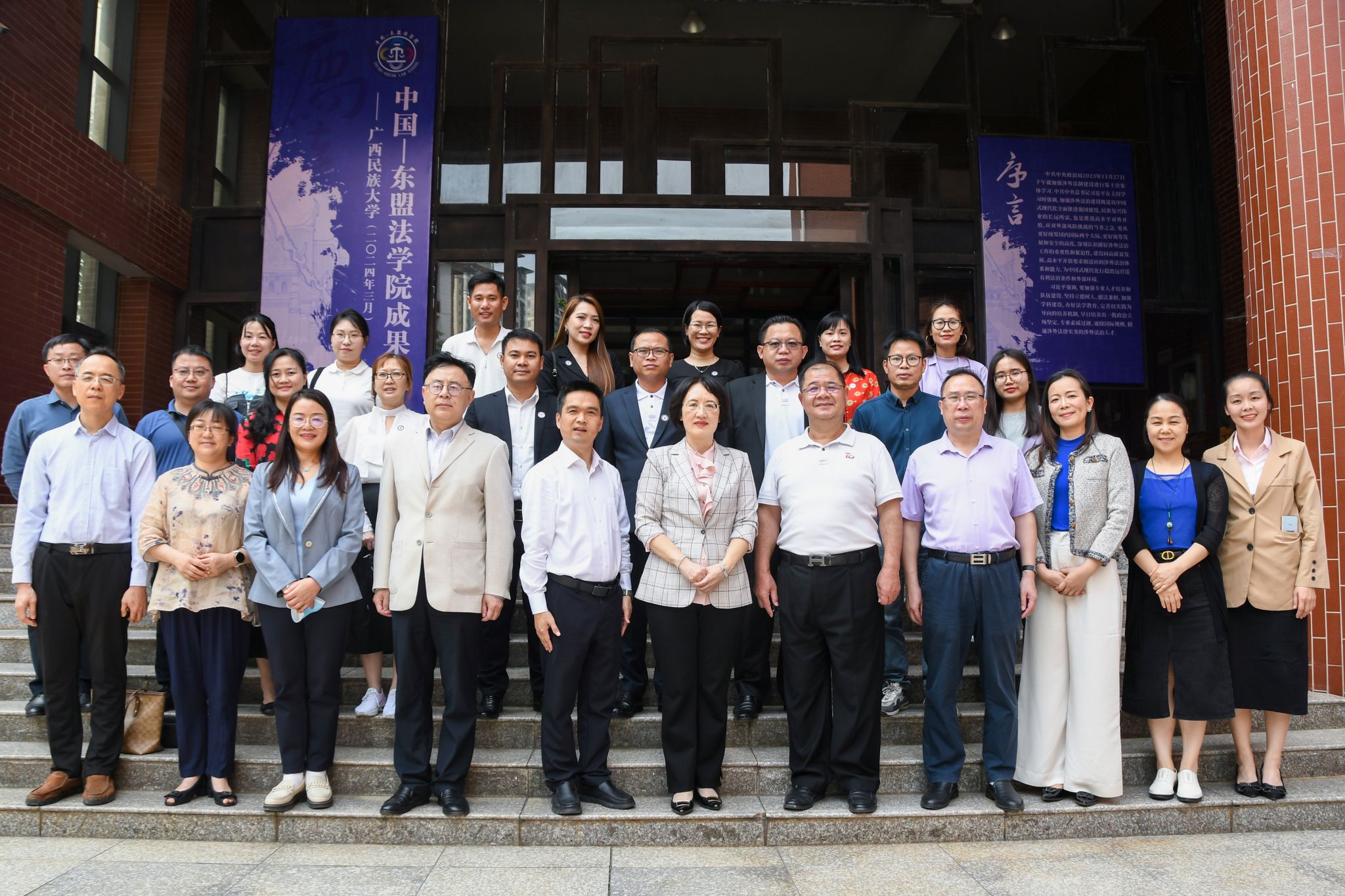 校领导与参会人员合影 会后,与会师生共同参观面向东盟教育成果展。(初审:叶兴艺 编辑:刘梦娇 校对:韦金华 复审:潘之铭 终审:王文娟)