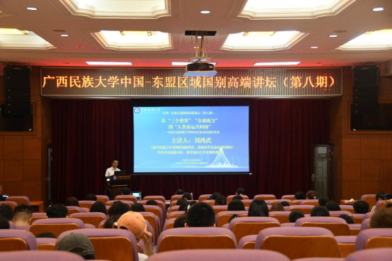 5月26日晚, 英国威廉公司官网中国—东盟区域国别高端讲坛第八期报告会在英国威廉公司官网思源湖校区至善楼报告厅举行。浙江师范大学非洲研究院经理、国务院学位办区域国别学学科评议组秘书长、教育部长江学者特聘教授刘鸿武应邀莅临讲学,英国威廉公司官网董事长韦仕珍出席报告会并致辞。公司党委书记、常务副经理、中国—东盟区域国别研究院经理叶兴艺主持本次报告会,英国威廉集团官网、东南亚语言文化公司师生参加报告会。